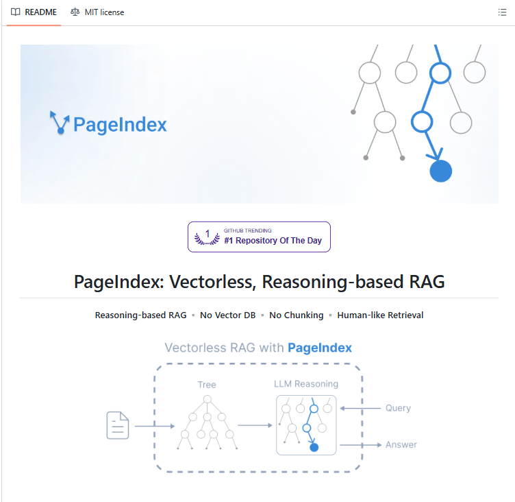 PageIndex builds a hierarchical tree index instead of embeddings. Like an intelligent table of contents with summaries at every level.