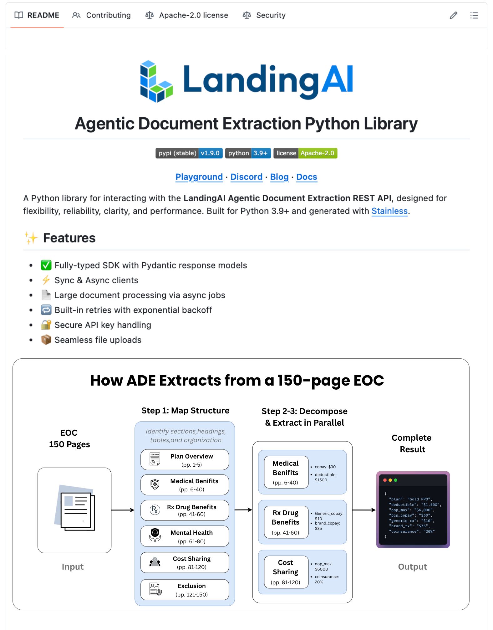 You process a 100-page contract. Split it into chunks. Extract data from each chunk separately. Stitch the results back together manually. A table spanning three pages comes back as three disconnected fragments. You write code to reconnect them. The next vendor's format is different. You write more code.