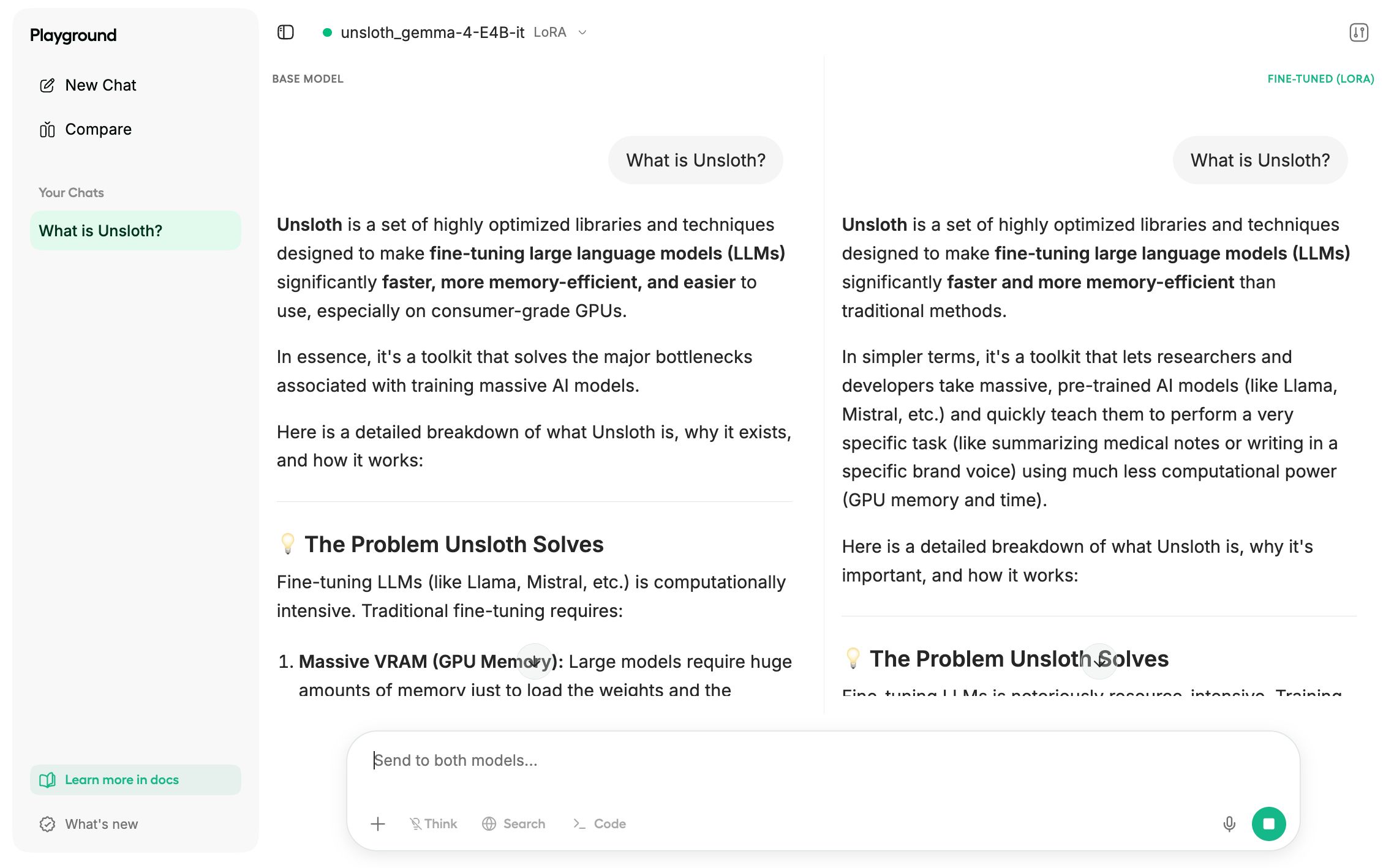 Click “Compare Mode” to compare your fine-tuned model against the original.
