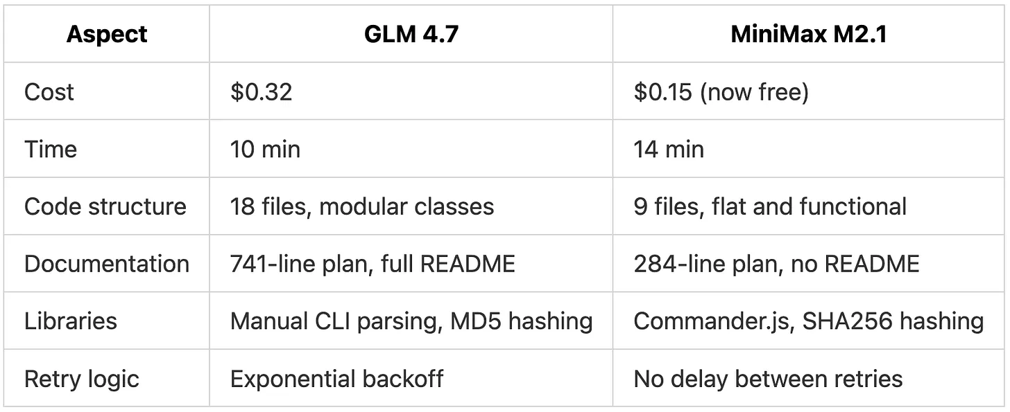 GLM-4.7 vs MiniMax-M2.1: Open-Weight Models Building a 20-Feature CLI End-to-End