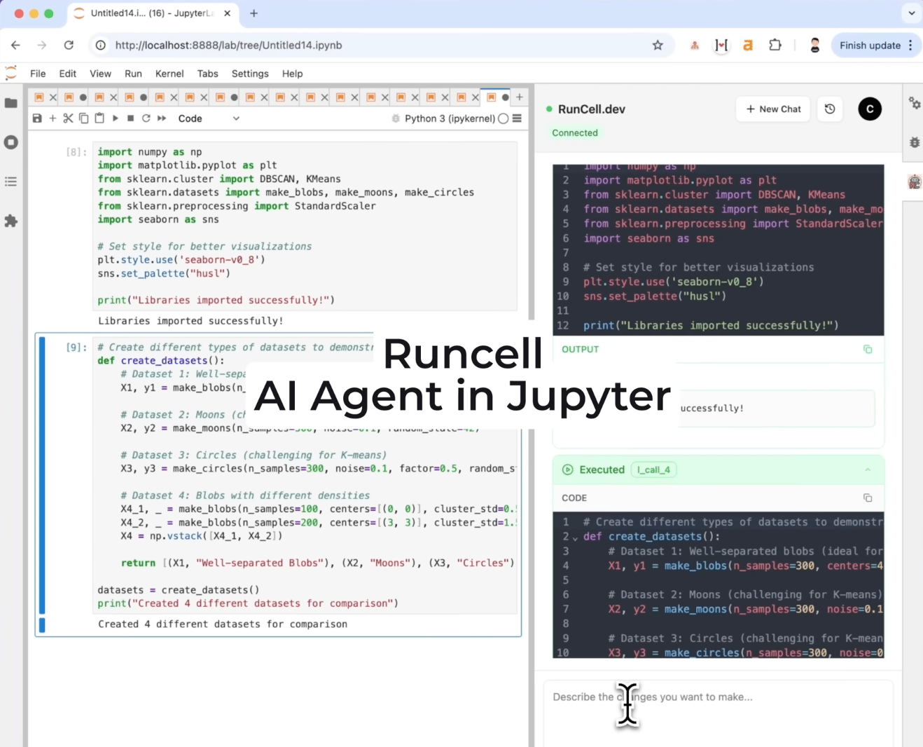 This lets you work directly inside your existing notebooks while the agent handles writing, running, and debugging code.