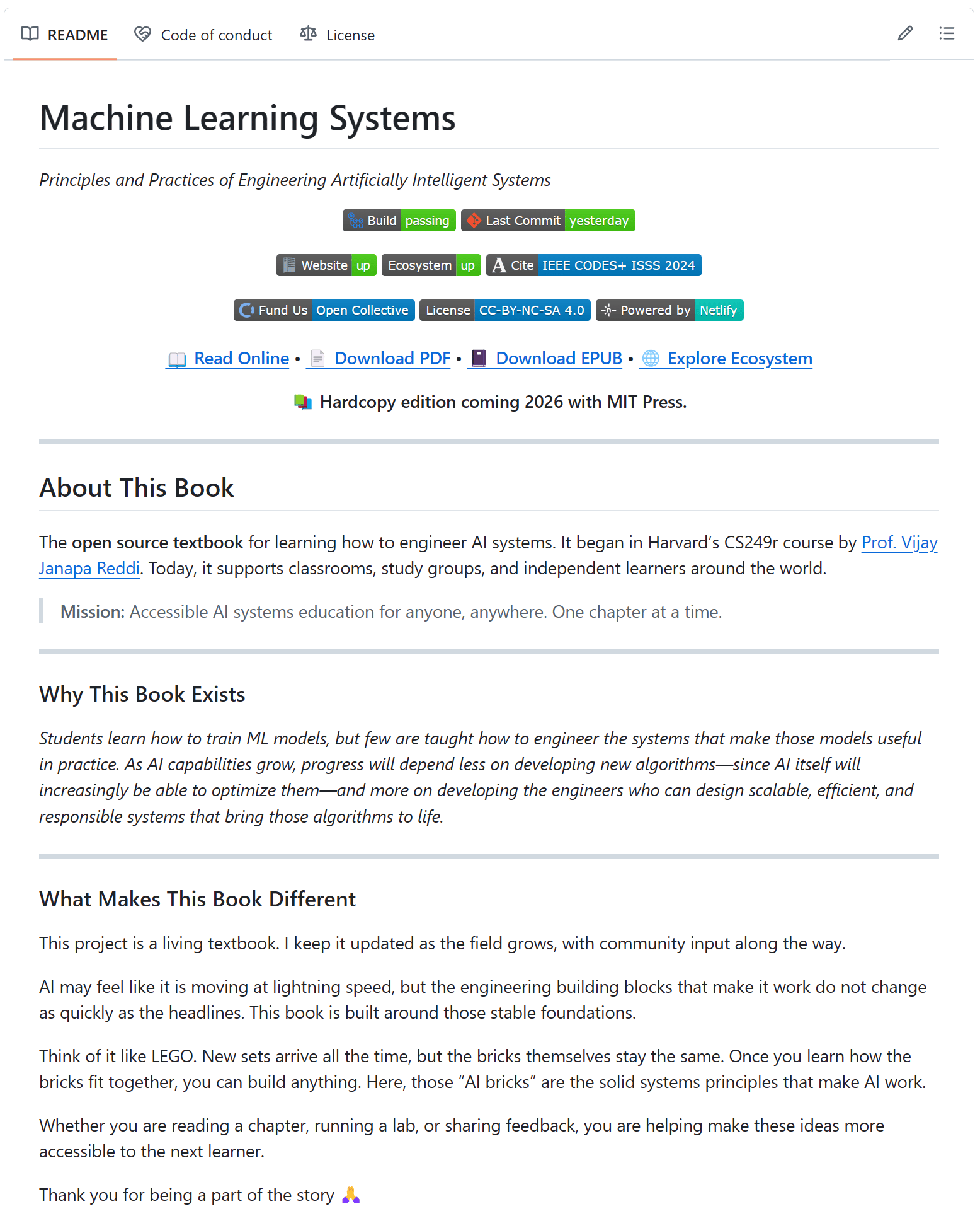 Harvard published a comprehensive, free book on ML systems engineering a practical guide for designing, building, and operating real-world machine learning systems.